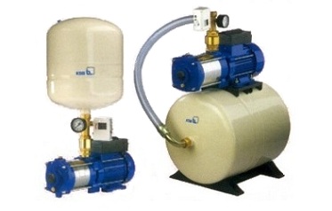 Horizontal, centrifugal, radially split multistagepumps fitted with pressure tank, pressure sensor and gauge.